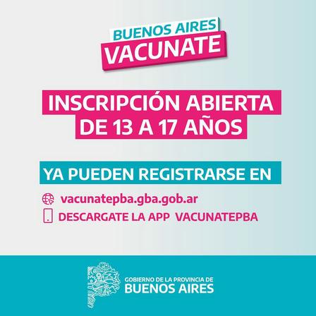 Por estas horas quedó abierto el registro para chicos de 13 a 17 años a través de la app vacunatePBA o de la web vacunatepba.gba.gob.ar