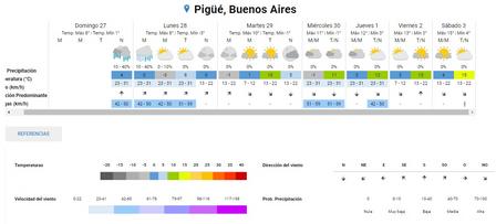 Para hoy, lunes, en la localidad de Pigüé, se esperan 8 grados de temperatura máxima.