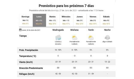 Dan baja probabilidad de lluvias y nevadas en Pigüé para la madrugada de este lunes.