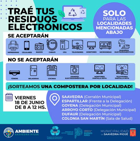 De 8.00 a 12.00 horas, el viernes, quienes acudan entregando sus desechos electrónicos participarán del sorteo de una compostera por localidad.