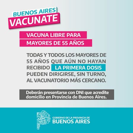 Ahora todas las personas mayores de 55 años que aún no hayan recibido la primera dosis, y no cuenten con turno asignado, podrán acudir a la Posta de Vacunación.