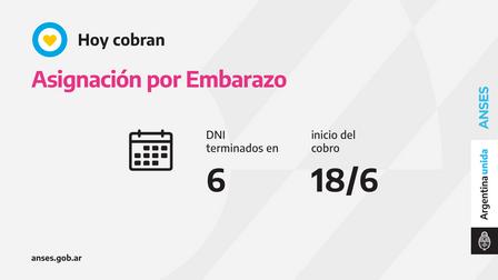 Con la utilización de la tarjeta de débito, hoy, viernes, cobran la Asignación por Embarazo las titulares con documentos terminados en 6.