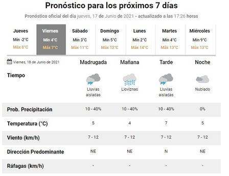 Se espera, para el viernes, un día fresco, con cielo cubierto, y probables precipitaciones en la localidad.