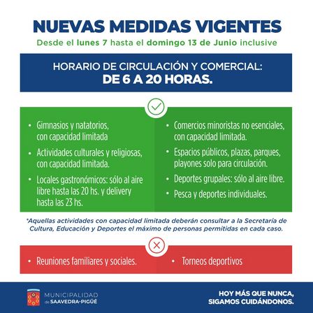 Hasta el domingo 13 de junio inclusive permanece vigente la autorización de circulación de 6.00 a 20.00 horas con el mismo rango para la actividad comercial.