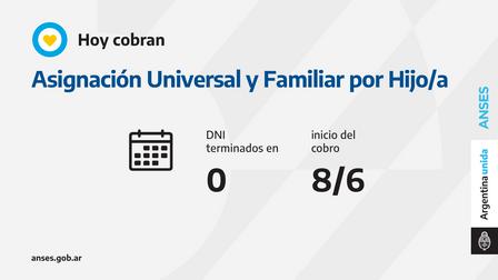 Con la utilización de la tarjeta de débito, hoy, martes, perciben la Asignación Universal por Hijo y la Asignación Familiar por Hijo titulares con documentos concluidos en 0.