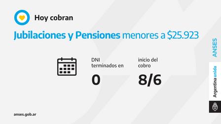 Las sucursales bancarias habilitadas atenderán por ventanilla a jubilados, jubiladas, pensionados y pensionadas con documentos terminados en 0 cuyos haberes no superen la suma de 25.925 pesos.