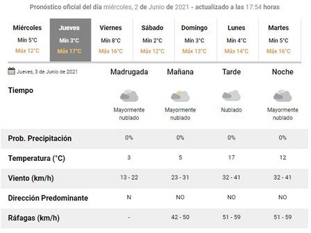 La sensación térmica, a la misma hora, era de dos grados centígrados en Pigüé.