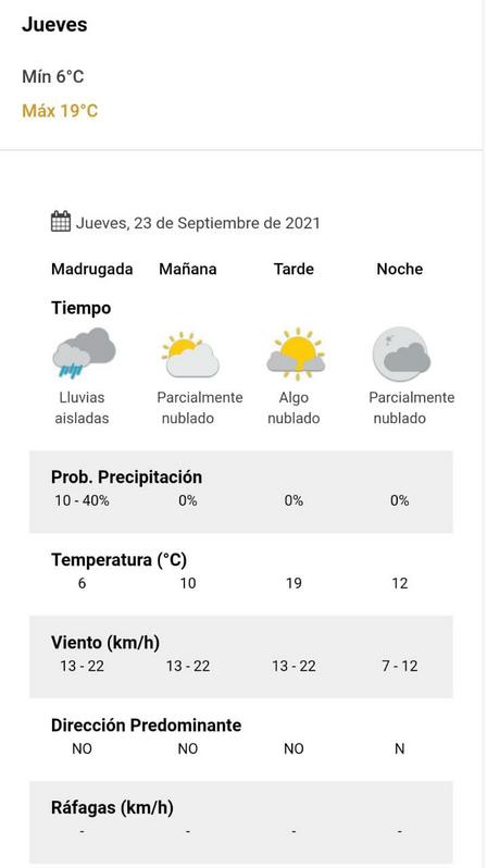 En la ciudad, esta tarde, la temperatura más elevada podría marcar diecinueve grados centígrados.