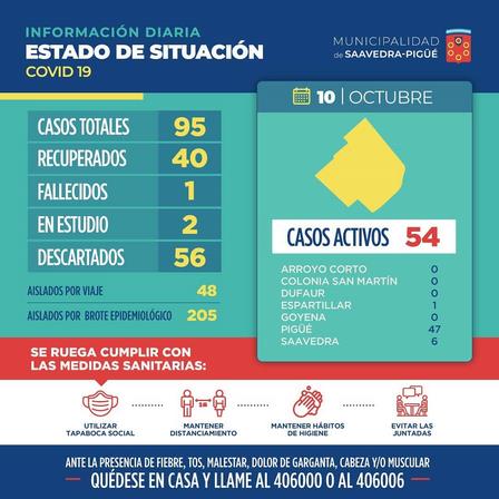 En el Partido de Saavedra presentaron el reporte diario de la pandemia que corresponde al resumen del 9 de octubre por la noche