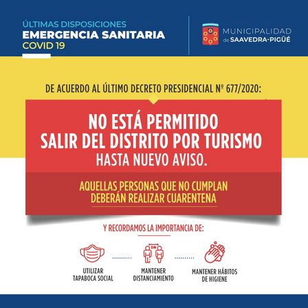 No está habilitado salir del Distrito de Saavedra por turismo hasta nuevo aviso según el último decreto.