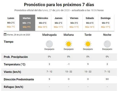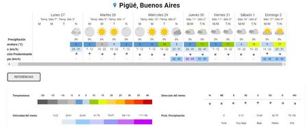 En Pigüé, para esos días, viernes, sábado, y domingo, anuncian mínimas de 3, 6 y 0 grados sobre cero.