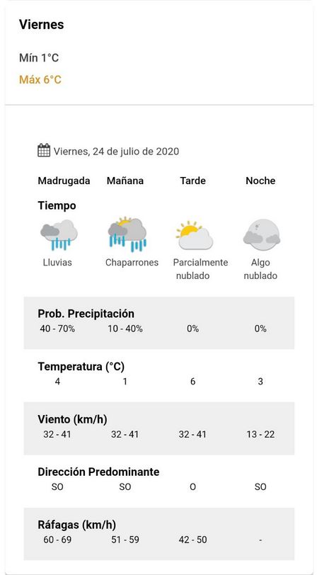 Esta información, sobre el día viernes, es generada desde el Servicio Meteorológico Nacional.