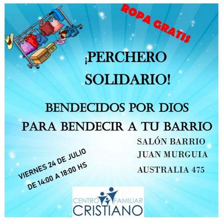 El Barrio Juan Murguía recibirá al Perchero Solidario del Centro Familiar Cristiano de 14.00 a 18.00 horas.