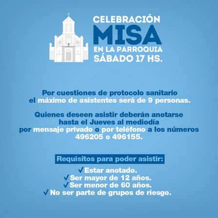 Este sábado se celebrará Misa en la Parroquia, de allí que, para asistir se deben respetar algunos requisitos.