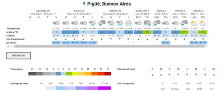 El informe es de las 12.00 horas elaborado con datos de la Estación del Servicio Meteorológico Nacional