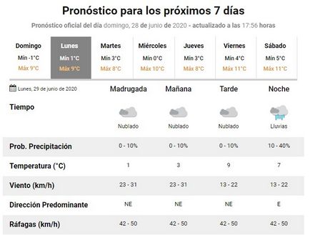 Durante el día de hoy, lunes, el Servicio Meteorológico Nacional anunció la probable llegada de lloviznas en la localidad.