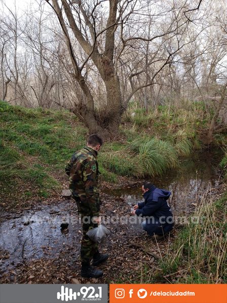 El responsable del Área de Bromatología y Zoonosis Municipal, Dr. Santos Sergueña junto a personal de la Patrulla Rural realizó tomas de muestra de agua y suelo en la zona donde se arrojaron envases de agroquímicos.