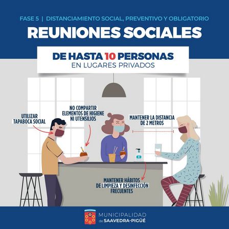 Hasta 10 personas podrán ser parte de las reuniones sociales en lugares privados en el ámbito del distrito.