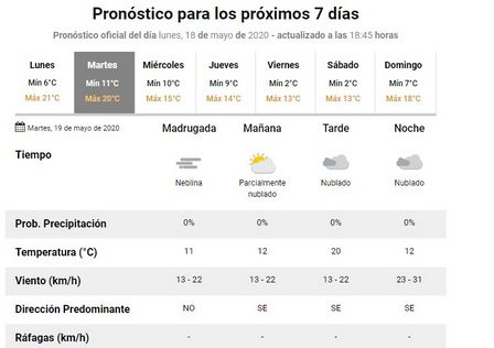 La oficina local del Servicio Meteorológico Nacional, en un mensaje, expresó “comencemos la Semana de Mayo con la escarapela en el pecho y en nuestros perfiles.