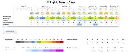 En Pigüé, para la tarde, están anunciando una temperatura, que de máxima podría alcanzar los quince grados.
