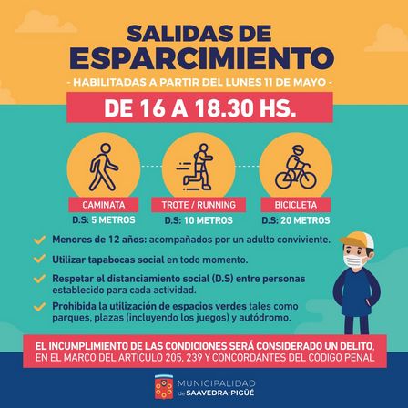 En el Partido de Saavedra se produjo la autorización de las salidas de esparcimiento con caminatas, la posibilidad de correr, o andar en bicicleta.
