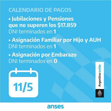 Sigue así el cronograma dispuesto por ANSES para esta nueva semana.