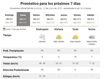 Durante el día de hoy, lunes, en la ciudad, se anuncian dieciséis grados de temperatura máxima.