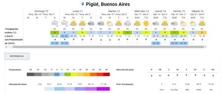 La sensación térmica, a esa misma hora, era de 4º en Pigüé con vientos pronunciados.