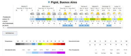 La sensación térmica, a la misma hora, en Pigüé era de un grado bajo cero.