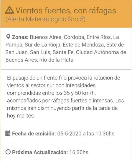 Durante el día de hoy, martes, en la región rige una advertencia proveniente del Servicio Meteorológico Nacional.