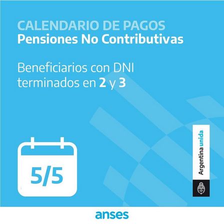 ANSES determinó que hoy, martes, 5 de mayo, las entidades bancarias atenderán el pago de pensiones no contributivas con DNI terminados en 2 y 3.