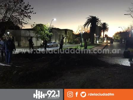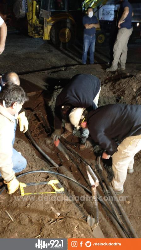 Trabajan ahora integrantes de una cuadrilla de la Cooperativa Eléctrica de Pigüé para subsanar el corte de fibra óptica generado en el centro de la ciudad.