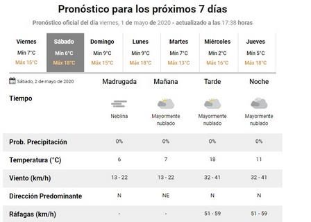 Durante el día de hoy, sábado, la temperatura más elevada podría llegar a los dieciocho grados.
