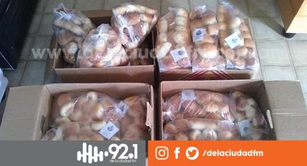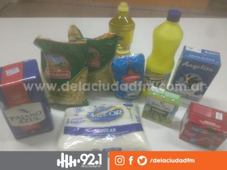 Un gran número de bolsas con 9 productos cada una fueron otorgadas a varias familias de ese sector de la ciudad.