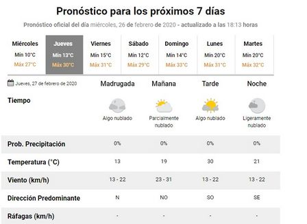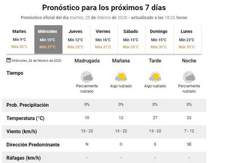 Para hoy, en la ciudad, el Servicio Meteorológico Nacional, anunció una máxima de veintisiete grados.