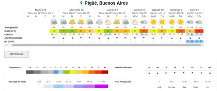 Los vientos marcarían un tope de ráfagas de hasta 36 kilómetros por hora en Pigüé.