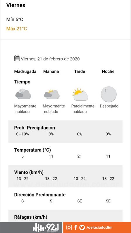 En esta localidad se espera por la presencia de una mañana fresca con una tarde más templada.