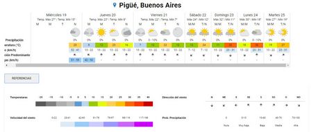 La sensación térmica se encontraba, a esa misma hora, en Pigüé, anotando 7º.