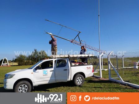 El personal que llegó a la ciudad busca volver a poner en funcionamiento el anemómetro.