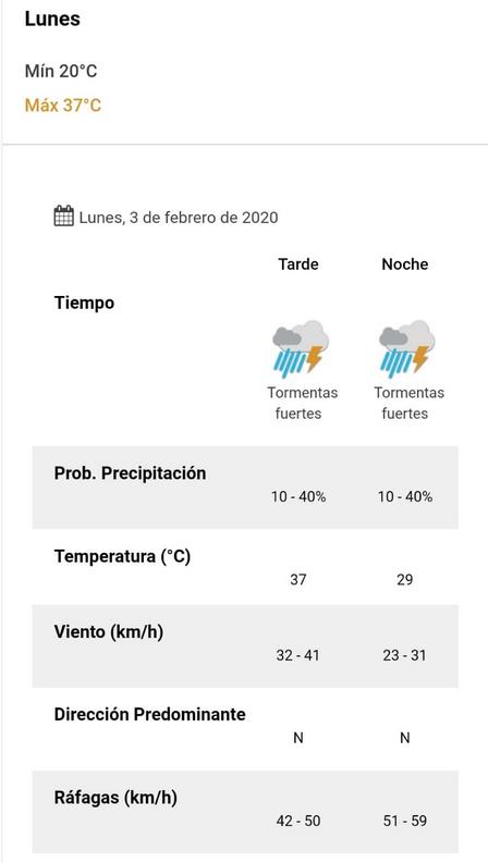 Este lunes, luego de las 15.00 horas, el registro del Servicio Meteorológico Nacional, era de 31º en la ciudad.