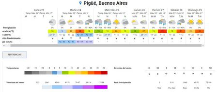 En Pigüé las temperaturas serían elevadas con ráfagas de viento de hasta 42 kilómetros por hora.