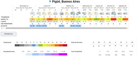La sensación térmica, a esa misma hora, era de veintiun grados en Pigüé.