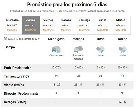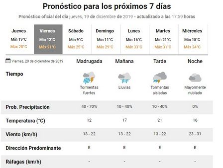 Para el día de hoy, jueves, por la noche, dan probables precipitaciones de acuerdo a las estimaciones del Servicio Meteorológico Nacional.