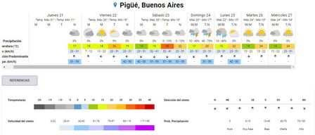 La sensación térmica, en Pigüé, era de nueve grados a esa misma hora.