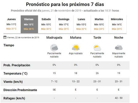 Para el día de hoy, viernes, se espera una máxima de veinticinco grados centígrados.