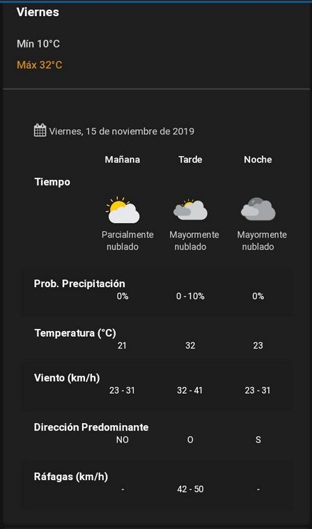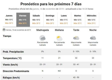 La máxima estipulada por el Servicio Meteorológico Nacional sería de treinta y dos grados.