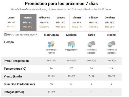 Para Pigüé están anunciando una jornada con lluvias, vientos y tiempo inestable.