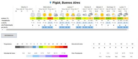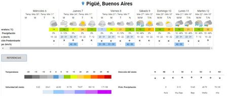 La sensación térmica, a esa misma hora, era de catorce grados en Pigüé.