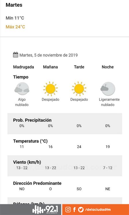 Se espera una jornada marcada por los vientos, la presencia del sol, y algunas instancias de nubosidad variable.