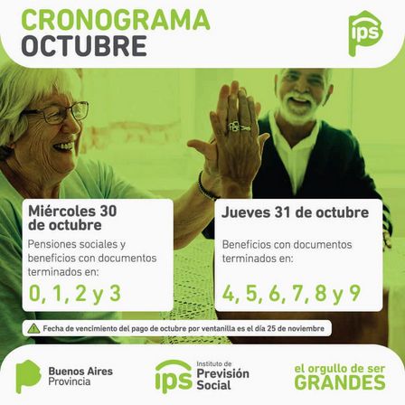 Quienes tengan terminación de DNI del 0 al 3 recibirán sus pagos el miércoles, mientras que, el jueves percibirán sus haberes los que tengan terminación en 4, 5, 6, 7, 8, y 9.
